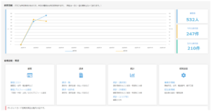 らくらく顧客管理では、管理画面にログインするとダッシュボードと呼ばれるホーム画面に会員数の増減を示すグラフが表示されます。