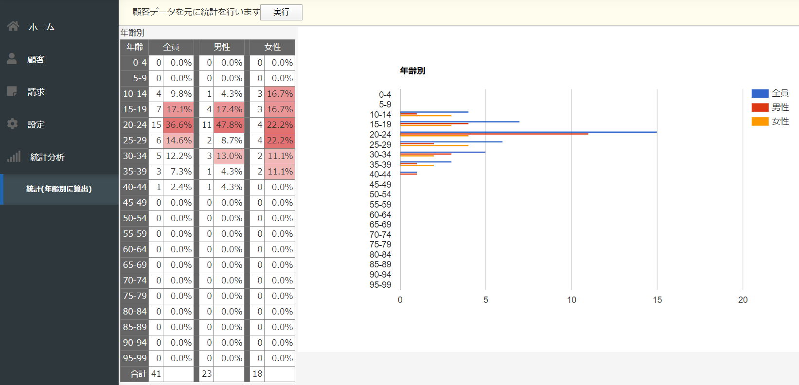 グラフは登録済みの会員データから自動生成。
