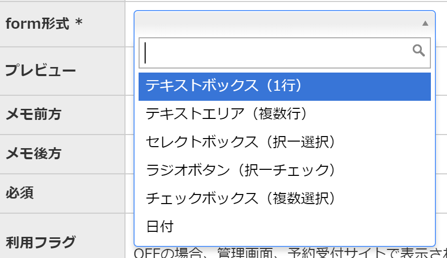 ・セレクトボックス(択一チェック)形式